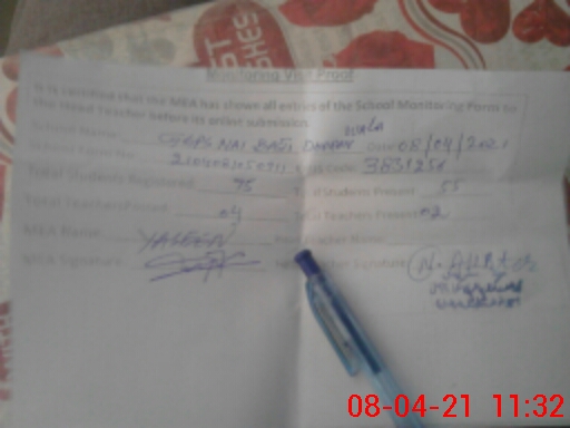 | Monitoring Date: 08-04-2021 | Start Time: 08-04-2021 10:50 AM | End Time: 08-04-2021 11:33 AM | Name of MEA: Gh**** Ya**** (R**** | |