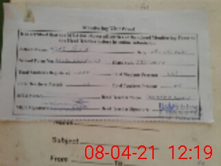 | Monitoring Date: 08-04-2021 | Start Time: 08-04-2021 11:26 AM | End Time: 08-04-2021 12:22 PM | Name of MEA: Kh**** Ha**** (R**** | |