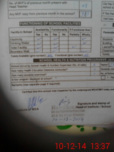 | Certified that this School was Inspected by the Undersigned MEA/DMO Today and the Information Stated Above is as Per Record. | |||||