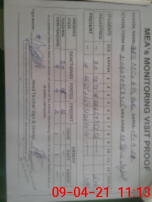 | Monitoring Date: 09-04-2021 | Start Time: 09-04-2021 09:58 AM | End Time: 09-04-2021 11:15 AM | Name of MEA: M.Ta**** Iq**** (S**** | |