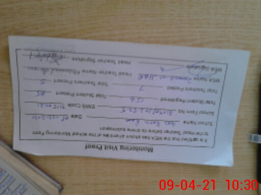 | Attendance Register | Head Teacher | MEA with School | Visit Proof |
