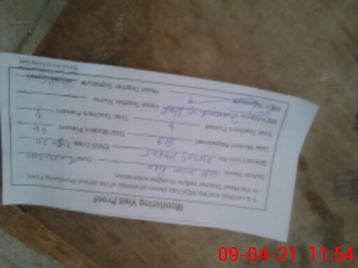 | Attendance Register | Head Teacher | MEA with School | Visit Proof |