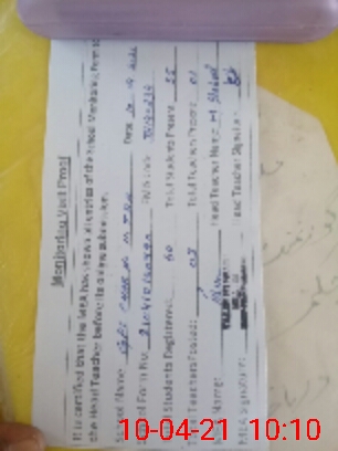 | Monitoring Date: 10-04-2021 | Start Time: 10-04-2021 09:44 AM | End Time: 10-04-2021 10:12 AM | Name of MEA: Ta**** Hu**** | |