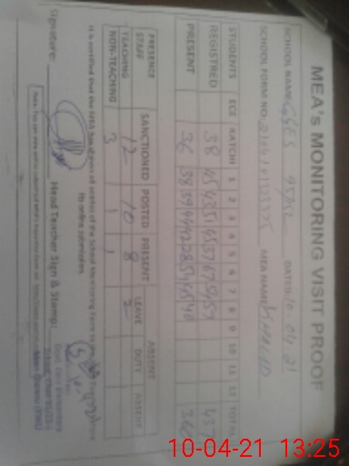 | Monitoring Date: 10-04-2021 | Start Time: 10-04-2021 12:23 PM | End Time: 10-04-2021 01:32 PM | Name of MEA: Kh**** Me**** | |