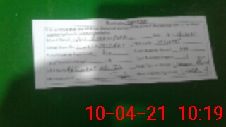 | Monitoring Date: 10-04-2021 | Start Time: 10-04-2021 09:28 AM | End Time: 10-04-2021 10:19 AM | Name of MEA: SH**** AL**** ZI**** (R**** | |