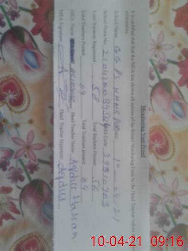 | Certified that this School was Inspected by the Undersigned MEA/DMO Today and the Information Stated Above is as Per Record. | |||||