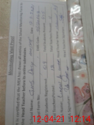 | Attendance Register | Head Teacher | MEA with School | Visit Proof |