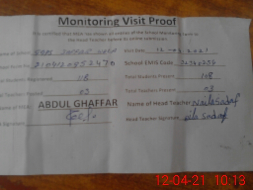 | Attendance Register | Head Teacher | MEA with School | Visit Proof |