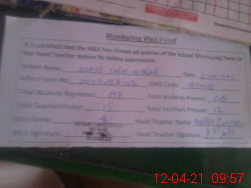 | Attendance Register | Head Teacher | MEA with School | Visit Proof |
