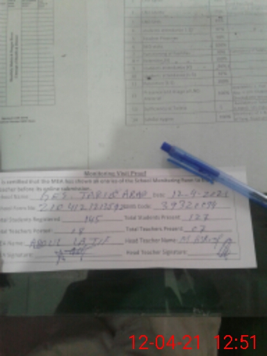 | EMIS Code: 39320094 | Name of School: GES TARIQ ABAD | |||