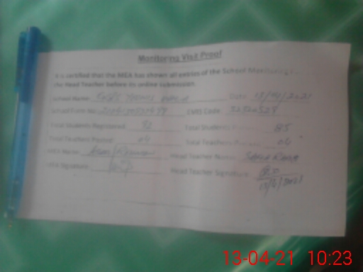 | Attendance Register | Head Teacher | MEA with School | Visit Proof |