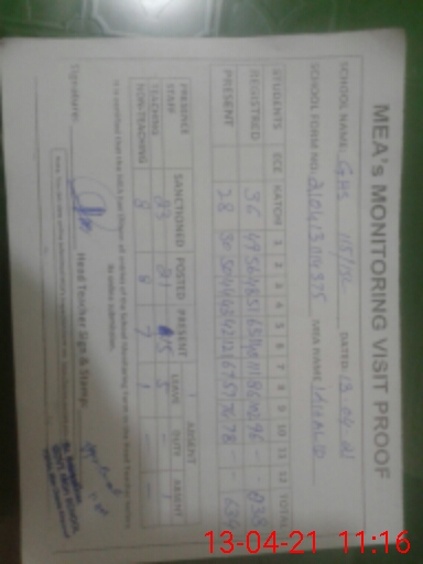 | Monitoring Date: 13-04-2021 | Start Time: 13-04-2021 08:53 AM | End Time: 13-04-2021 11:25 AM | Name of MEA: Kh**** Me**** | |