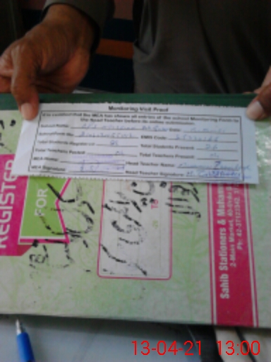 | Attendance Register | Head Teacher | MEA with School | Visit Proof |