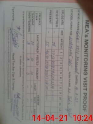 | Monitoring Date: 14-04-2021 | Start Time: 14-04-2021 09:15 AM | End Time: 14-04-2021 10:28 AM | Name of MEA: M.Ta**** Iq**** (S**** | |