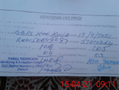 | Attendance Register | Head Teacher | MEA with School | Visit Proof |