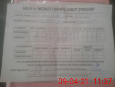| Attendance Register | Head Teacher | MEA with School | Visit Proof |
