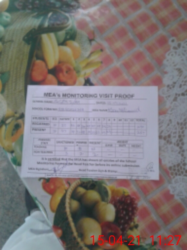 | Attendance Register | Head Teacher | MEA with School | Visit Proof |