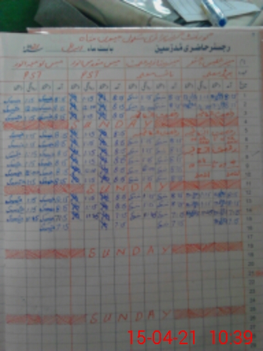 | CNIC | Full Name | Designation | R/C | Absence During Last Calender Month |