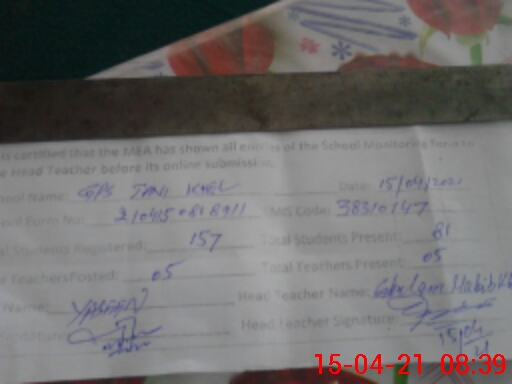 | EMIS Code: 38310147 | Name of School: GPS TANI KHEL P/O KAMAR MUSHANI ISA KHEL | |||