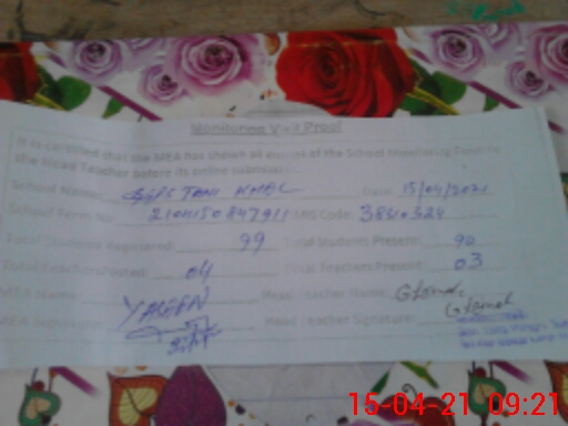 | Monitoring Date: 15-04-2021 | Start Time: 15-04-2021 08:47 AM | End Time: 15-04-2021 09:22 AM | Name of MEA: Gh**** Ya**** (R**** | |