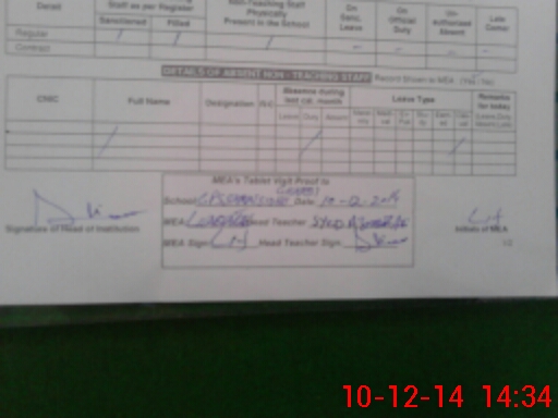 | Certified that this School was Inspected by the Undersigned MEA/DMO Today and the Information Stated Above is as Per Record. | |||||