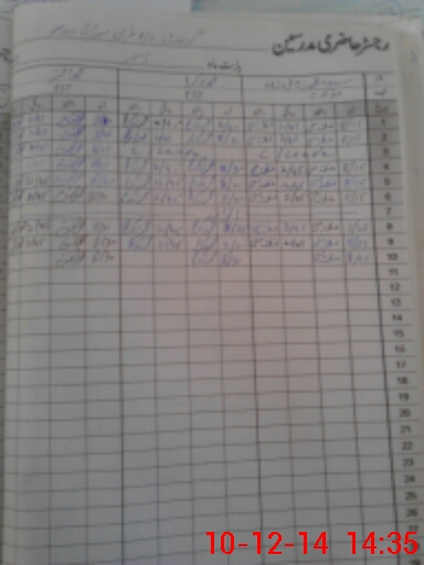 | CNIC | Full Name | Designation | R/C | Absence During Last Calender Month |
