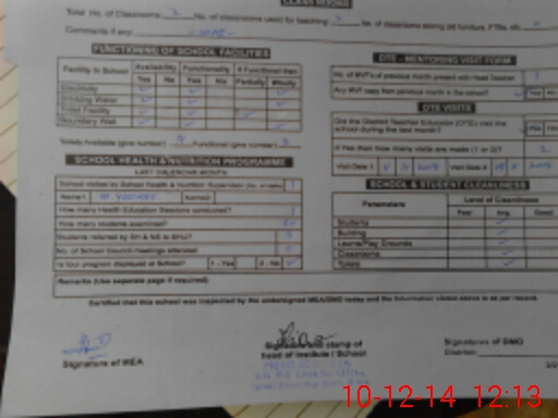 | School Visited by School Health & Nutrition Supervisor (No. of Visits) | 1 | Name1: | M Younas | Name2: | |