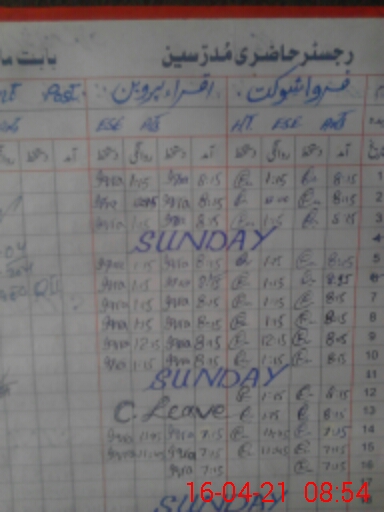 | CNIC | Full Name | Designation | R/C | Absence During Last Calender Month |