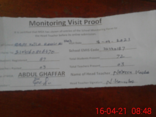 | EMIS Code: 32340187 | Name of School: GGPS KOTLA RAHAM ALI SHAH | |||