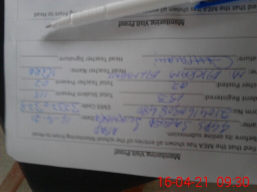 | Attendance Register | Head Teacher | MEA with School | Visit Proof |