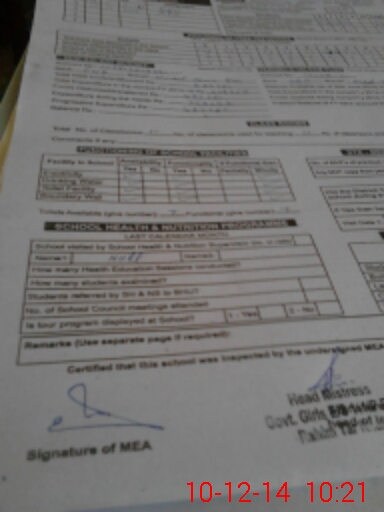 | Certified that this School was Inspected by the Undersigned MEA/DMO Today and the Information Stated Above is as Per Record. | |||||