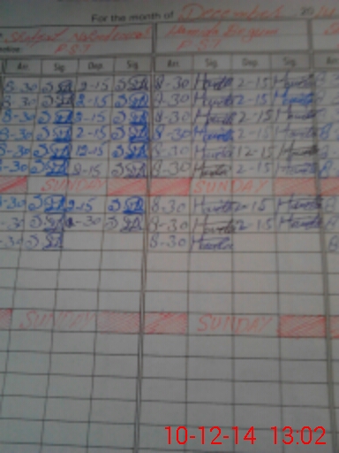 | Monitoring Date: 10-12-2014 | Start Time: 10-12-2014 12:54 PM | End Time: 10-12-2014 01:03 PM | Name of MEA: Ja**** Hu**** | |