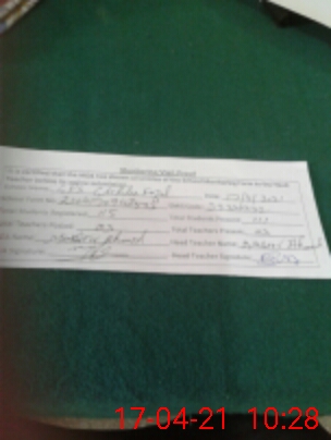 | Attendance Register | Head Teacher | MEA with School | Visit Proof |