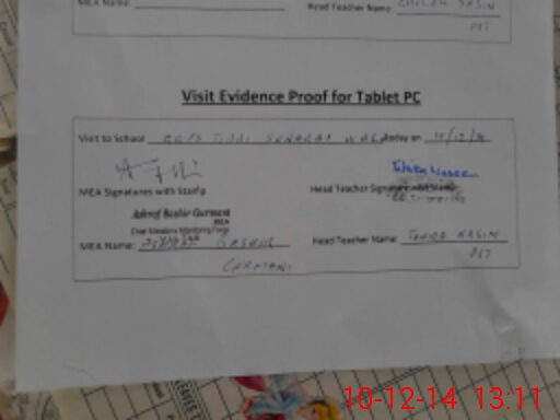 | Attendance Register | Head Teacher | MEA with School | Visit Proof |
