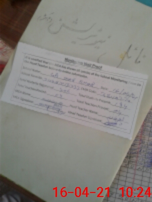 | School Visited by School Health & Nutrition Supervisor (No. of Visits) | 1 | Name1: | Riaz Hussain | Name2: | |