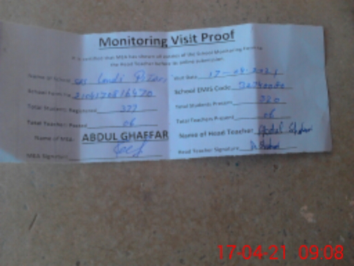 | Attendance Register | Head Teacher | MEA with School | Visit Proof |