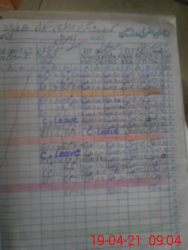 | CNIC | Full Name | Designation | R/C | Absence During Last Calender Month |