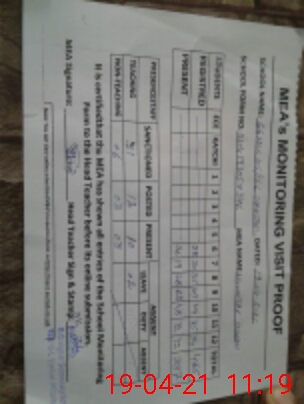 | Attendance Register | Head Teacher | MEA with School | Visit Proof |