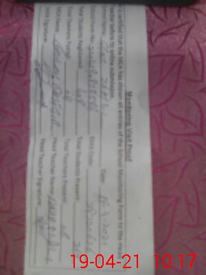 | Attendance Register | Head Teacher | MEA with School | Visit Proof |