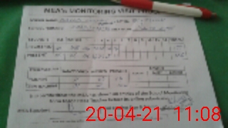 | Monitoring Date: 20-04-2021 | Start Time: 20-04-2021 10:07 AM | End Time: 20-04-2021 11:10 AM | Name of MEA: Sa**** Ah**** | |