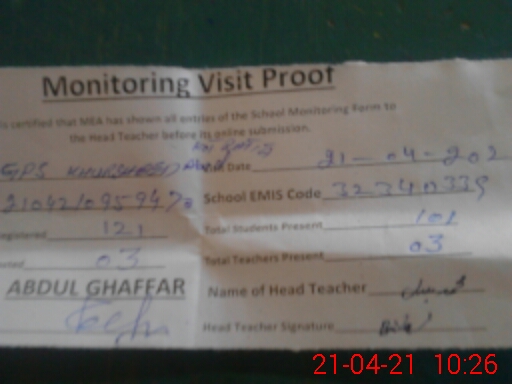 | EMIS Code: 32340339 | Name of School: GPS KHURSHID ABAD (KOT RATTA) | |||