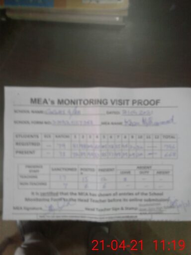| Certified that this School was Inspected by the Undersigned MEA/DMO Today and the Information Stated Above is as Per Record. | |||||