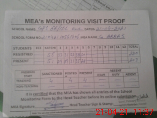| Certified that this School was Inspected by the Undersigned MEA/DMO Today and the Information Stated Above is as Per Record. | |||||