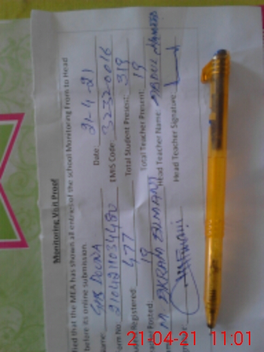 | Attendance Register | Head Teacher | MEA with School | Visit Proof |