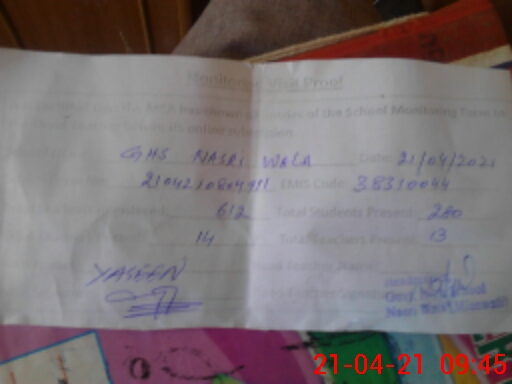 | EMIS Code: 38310044 | Name of School: GHS NASRI WALA | |||