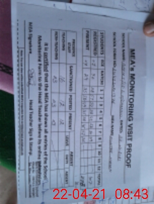 | Attendance Register | Head Teacher | MEA with School | Visit Proof |