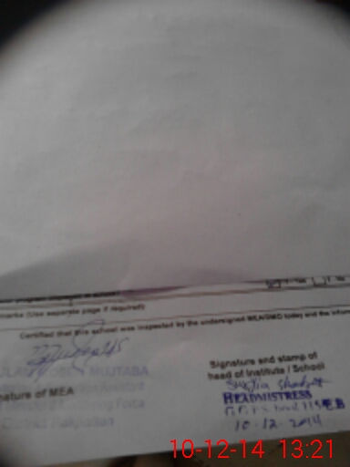 | Certified that this School was Inspected by the Undersigned MEA/DMO Today and the Information Stated Above is as Per Record. | |||||