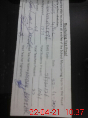 | Attendance Register | Head Teacher | MEA with School | Visit Proof |