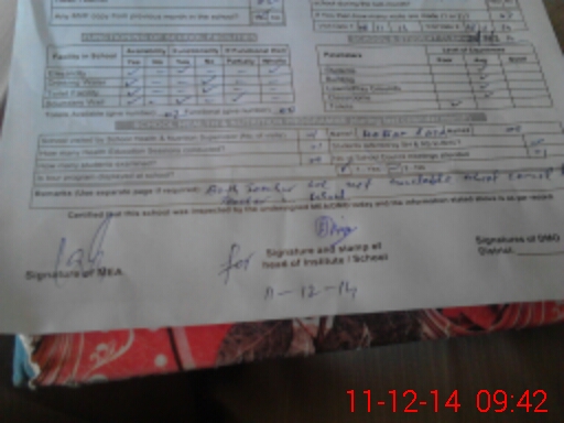 | Certified that this School was Inspected by the Undersigned MEA/DMO Today and the Information Stated Above is as Per Record. | |||||