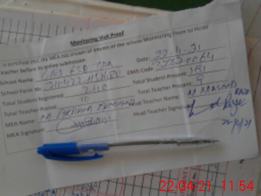| EMIS Code: 32320064 | Name of School: GES CHAK NO. 638/TDA | |||